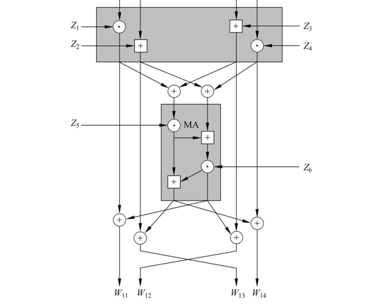 轮迭代; 一个结尾轮。其中解密算法的轮函数为1