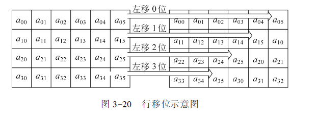 按指定的位移量对状态的行进行的行移位运算记为ShiftRow ( State ),行移位示意图: