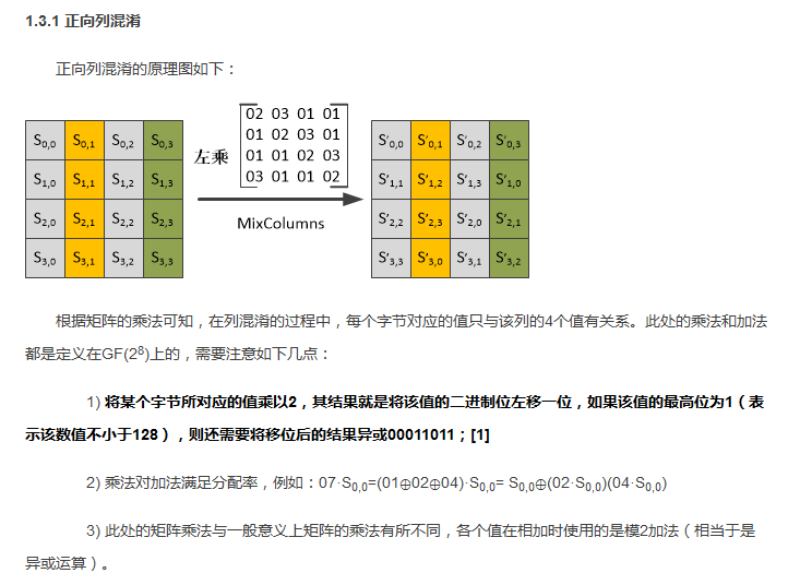 对状态State 的所有列所做的列混合运算记为MixColumn( State ),列混合整体效果图: