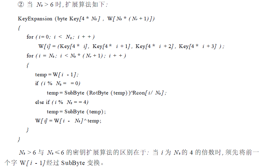 加密算法为顺序完成以下操作: 初始的密钥加; ( Nr - 1) 轮迭代;一个结尾轮。即1
