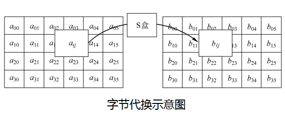 字节代换是非线形变换,独立地对状态的每个字节进行。代换表(即S-盒)是可逆的,由以下两个变换的合成得到: